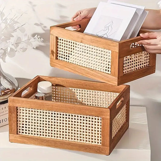 Cesta de Armazenamento Rattan Vintage – Estilo Decorativo