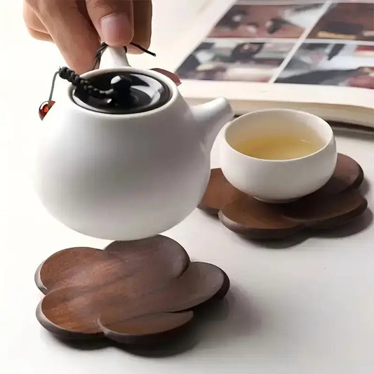 Apoio de Copo de Nogueira em Forma de Flor