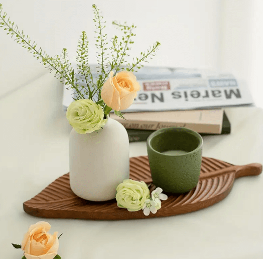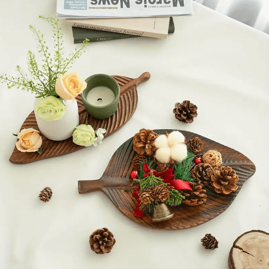 Transforme suas reuniões em momentos especiais com a Bandeja Folha de Noz em Madeira Maciça, uma escolha que combina estilo e funcionalidade.