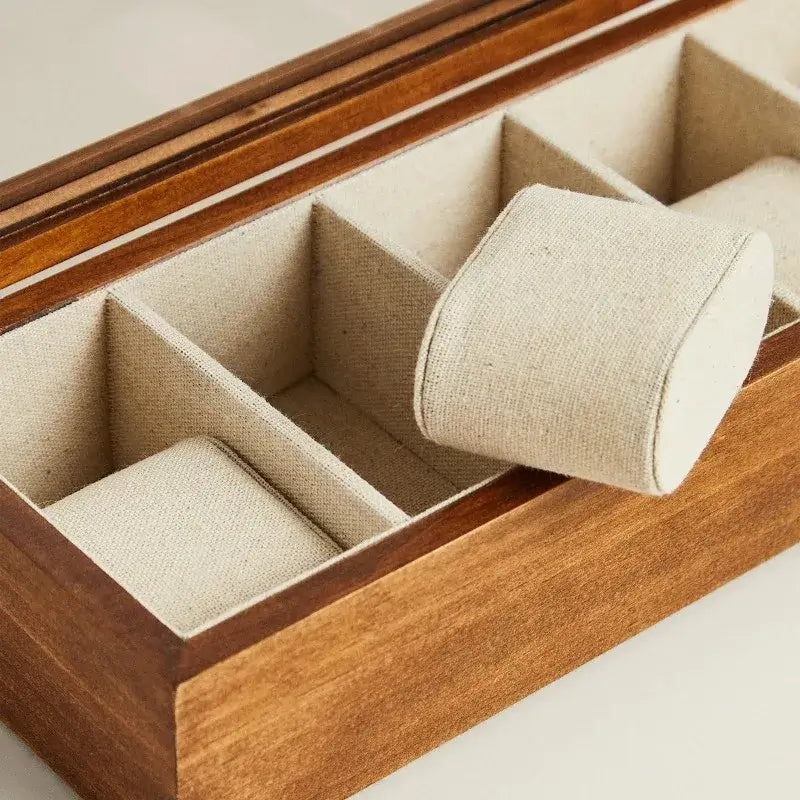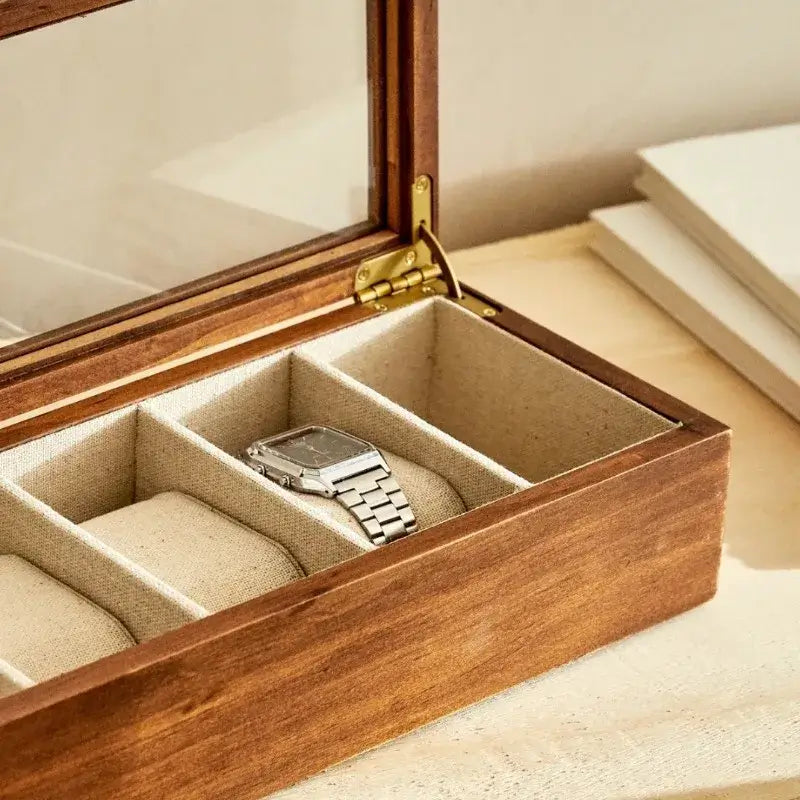 ✅ Visual impressionante: A tampa de vidro resistente permite visualizar seus relógios sem precisar abrir a caixa, funcionando também como peça de decoração para cômodas, escritórios ou armários.