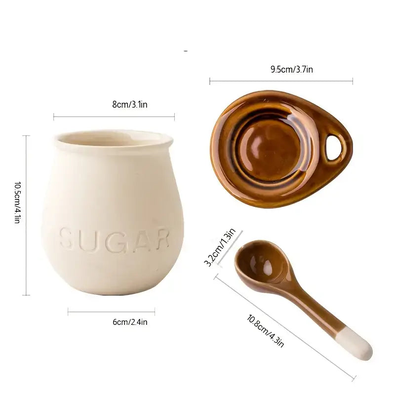 "Confesso que comprei com medo de ser só mais um potinho bonito e minúsculo, mas fiquei bem surpreso. O frasco é firme, a cerâmica tem peso real (não é leve demais) e a colher é toda de cerâmica também, super charmosa. O que me ganhou foi a embalagem: veio super protegido, sem risco de quebrar. Dá pra ver que é um cuidado acima da média.Ah, e sim: cabe sal e açúcar tranquilamente — uso os meus todos os dias na bancada e continuam lindos. Já quero mais dois!