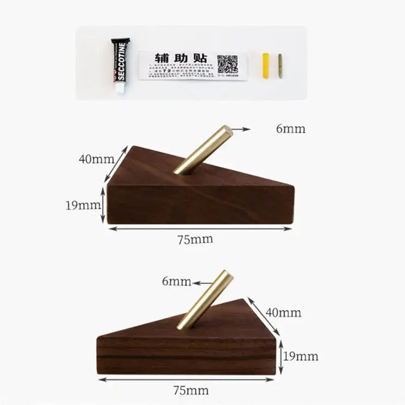 Gancho Triangular de Madeira e Latão para Decoração