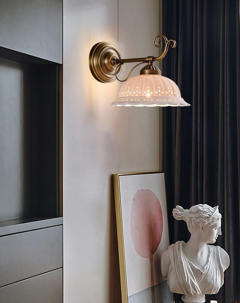 A Luminária Vintage de Cerâmica Branca com Latão combina o brilho elegante do latão escovado com a pureza da cerâmica artesanal, criando um ponto de luz que é ao mesmo tempo funcional e decorativo.