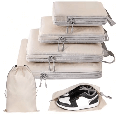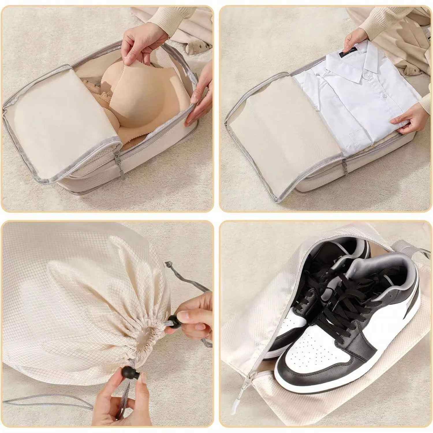 Este conjunto não apenas otimiza o espaço em sua bagagem, mas também oferece uma experiência de viagem sem estresse, permitindo que você se concentre no que realmente importa: aproveitar sua jornada. Viaje com confiança e moda, sabendo que tudo está em seu devido lugar.