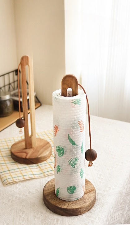 Suporte de Toalha de Papel em Madeira de Acácia - Estilo Moderno